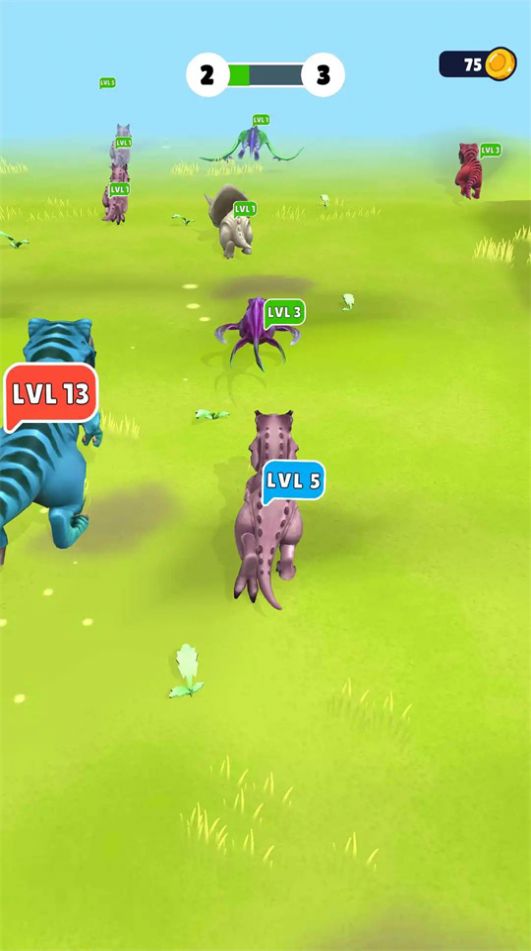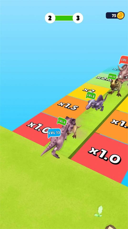 游戏的核心玩法在于合并系统,玩家可以将两只同类恐龙合并为更强大的新品种,这种进化机制大大提升了游戏的策略深度。同时,丰富的武器系统让你在奔跑过程中可以攻击其他玩家,为比赛增添更多变数。