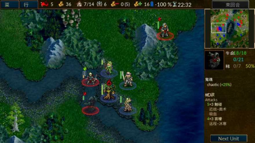 在战场上,每个单位都有自己的长处和短处。地形对一个单位的防御能力(闪避率)影响巨大,所以单位所在的地形非常重要。攻击(近战和远程)、武器类型(刀刃、穿刺、冲击、寒冷、火焰、奥术)、地形适用性以及昼夜循环都会影响战略和战术。在战役期间,单位可以通过与敌人交战来升级并变得更强大,所以在防止敌人获得高级单位的同时保留你的单位,最新版本加入了"老兵传承"系统,退役单位可将部分经验传授给新兵。