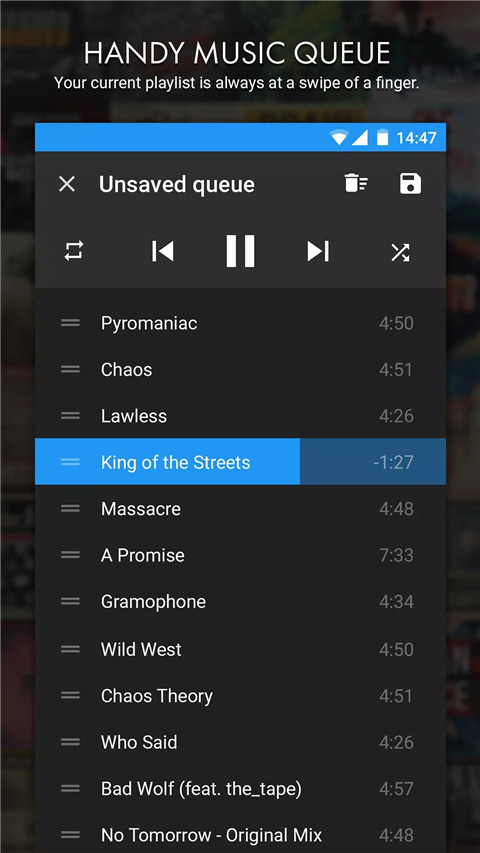 支持后台播放,不影响其他操作。锁屏状态下仍可控制播放,通知栏快捷操作让切歌更便捷。