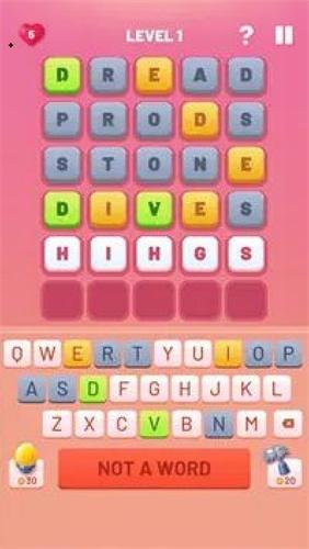 组成单词,玩家可以在游戏中通过向前或向后等等其他方式来组成单词,通过组成单词完成关卡,进入到下一关。创新性的"字母链"系统允许玩家通过滑动连接任意方向的字母,支持180度旋转识别,甚至能发现隐藏的逆向拼写单词,极大拓展了玩法可能性。