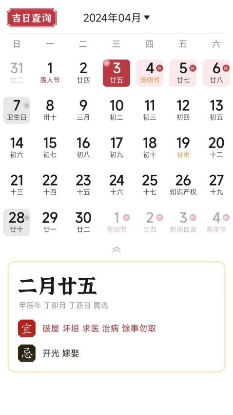 可以使用吉日查询工具对适宜办事的吉日在线查询;查询结果支持多种排序和筛选方式,方便用户找到最合适的日期。