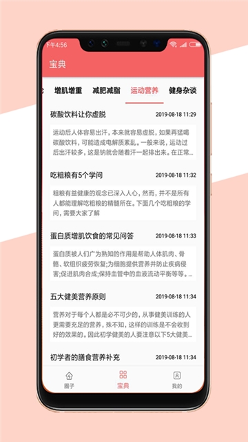 系统化的健身知识分类体系,包含营养学、运动解剖学等内容,用户可根据自身需求选择性学习;