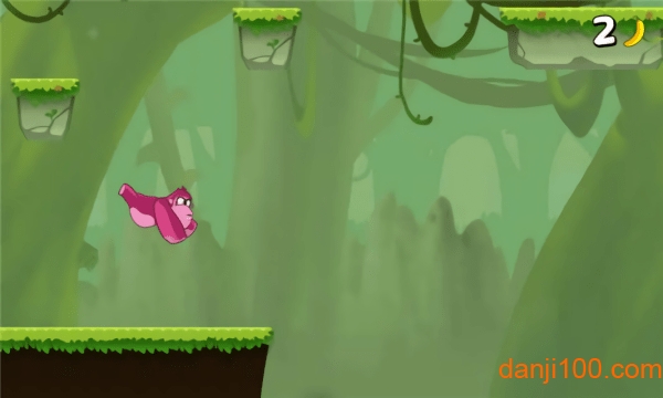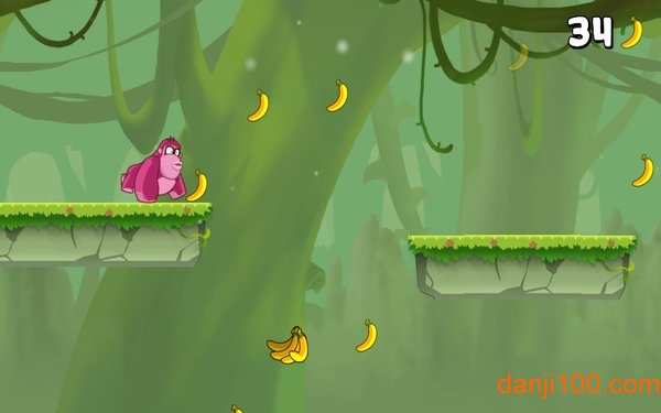 点击屏幕上,使猩猩跳或双跳,灵活运用二段跳可以跨越更远的距离;