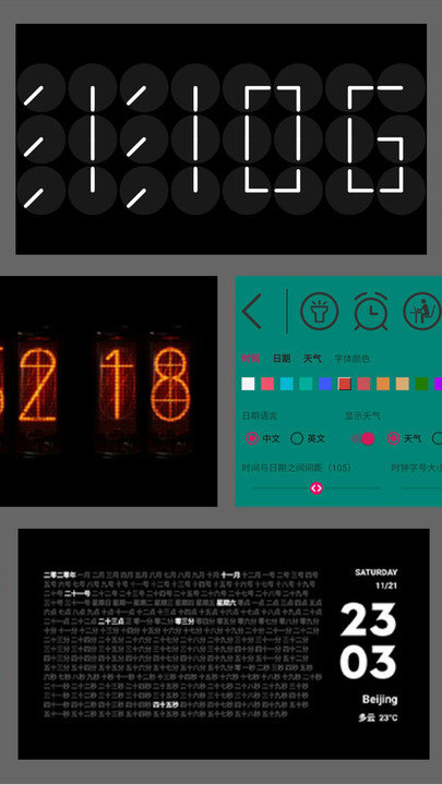 提供丰富的字体库选择,支持自定义时钟颜色和透明度调节,让用户可以根据个人喜好打造独一无二的时钟界面。
