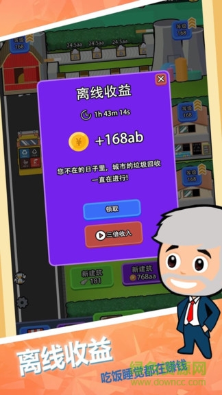 游戏采用创新的垃圾分类玩法,从收集到处理全程模拟,让玩家深入了解垃圾回收产业链。通过招募不同级别的专业主管,可以实现回收流程的自动化升级,大幅提升经营效率。独特的离线收益系统让玩家即使不在线也能持续获得收益,真正做到"躺着赚钱"。游戏还支持跨城市经营,玩家可以在多个地区建立回收工厂,打造全国性的环保商业网络。丰富的成就系统和排行榜功能,更能激发玩家的竞争欲望,体验成为垃圾回收大亨的成就感。