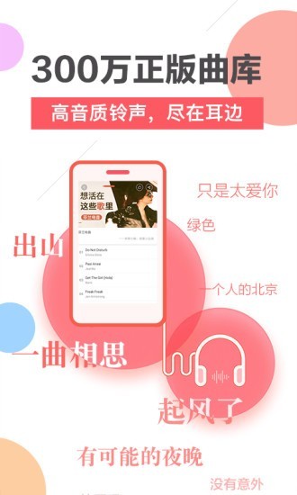 海量铃声曲库,海量新歌、热门歌曲、人气歌手,紧跟时下音乐潮流。系统采用智能推荐算法,根据用户历史使用习惯,自动推送可能感兴趣的铃声资源。随着使用时间增加,推荐精准度会不断提升,真正做到懂你所爱。