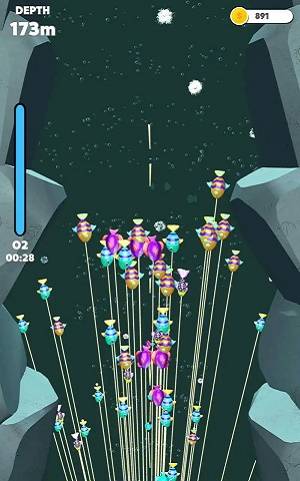 角色自定义系统包含50套主题潜水服和200种装备涂装,橡皮人物理引擎会真实表现深海高压下的滑稽变形效果。沙盒编辑器允许玩家设计专属海底关卡并分享至社区。