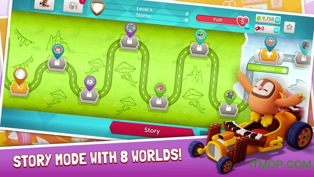 在《星光赛旅超级卡丁车》中,玩家将跟随主角Bo和Kikki展开一场惊险刺激的星际冒险,目标是追回被反派Nuru偷走的魔法星星。这些星星不仅是维持宇宙平衡的关键,更是驱动卡丁车的神奇能源。游戏设置了8个风格迥异的星际世界,每个世界都包含16条精心设计的赛道,玩家需要在这些赛道上面对各种障碍和敌人的挑战。除了主线剧情外,游戏还提供了丰富的自定义内容,玩家可以打造专属卡丁车,设计独特赛道,甚至建立自己的奖杯陈列室。多人模式支持最多8名玩家同时在线竞技,你可以邀请好友一起体验这场星际卡丁车盛宴,或者在创意工坊中挑战其他玩家设计的趣味赛道。