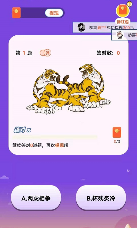 创新性推出"表情成语"玩法,例如用飞机表情+云朵表示"冲上云霄",生动形象又考验知识储备;2、累计猜对1000道题目即可获得"猜题大师"称号,不仅能参与百万奖池瓜分,还能解锁专属表情包;3、每日3次免费刮奖机会,最高可中188元现金奖,连续登录7天必得5元无门槛红包;4、系统每15分钟刷新一轮红包雨,夜间时段红包金额翻倍,设置提醒功能就不会错过任何奖励机会。所有中奖记录都会永久保存在个人中心备查。