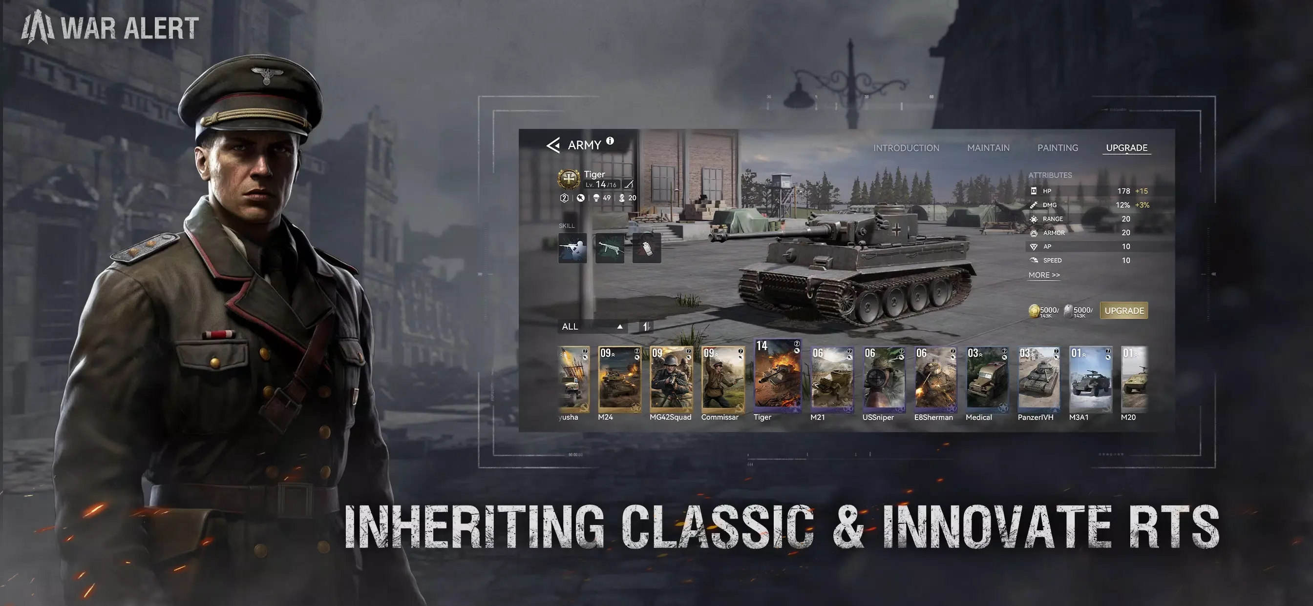 多元化的兵种和装备选择,玩家可以根据战局情况灵活搭配兵力;游戏包含200多种历史武器装备,从M4谢尔曼坦克到虎式坦克,从MP40到汤普森冲锋枪。玩家可以自由组合打造特色部队。