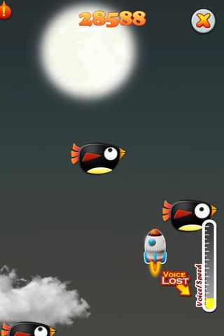 游戏的核心玩法完全依靠声音控制,玩家需要对着麦克风持续发出"Ah~~~"等声音来推动火箭升空。游戏采用先进的声波识别技术,能够精准捕捉玩家的声音强度,声音越大火箭上升速度越快。需要注意的是,声音必须保持持续不断,哪怕只有一秒的停顿都会导致火箭熄火坠落。游戏还加入了重力感应控制,玩家可以通过倾斜手机来调整火箭的飞行方向。随着游戏进行,难度会逐渐增加,玩家需要掌握好呼吸节奏和声音强度,才能让火箭飞得更高更远。