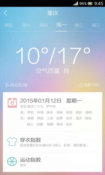 覆盖面广,信息全面:不仅覆盖全国所有县级城市,还提供空气质量、紫外线指数、穿衣建议等全方位生活气象服务。