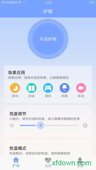 场景应用,提供夜间、阅读、游戏、助眠和影音等多种场景模式,每种模式都经过专业调校,可根据不同使用环境自动调节手机亮度,确保眼睛舒适。