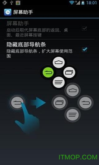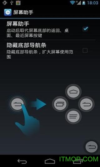 屏幕助手启动后可以完全取代系统原有的底部导航按键,包括返回键、主页键和最近任务键,操作更加直观便捷。
