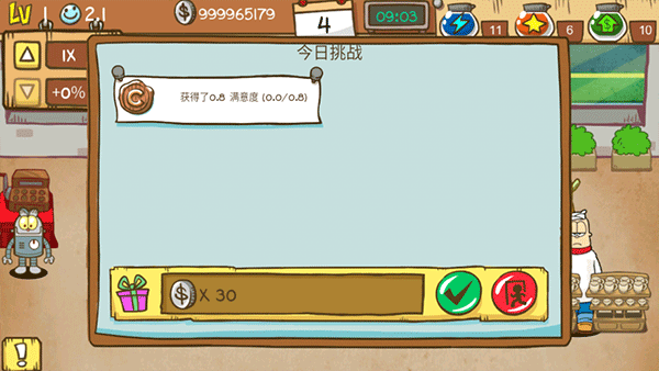前期尽量使用2倍甚至3倍速度(不是药水瓶子,是左上角那个时间加速的),偶试过了,即使偶尔有脑袋短路,气走一两个客人,可是营业额也要高些,况且节奏快了也要刺激得多。加速模式能显著提高游戏收益,适合追求高效率的玩家。