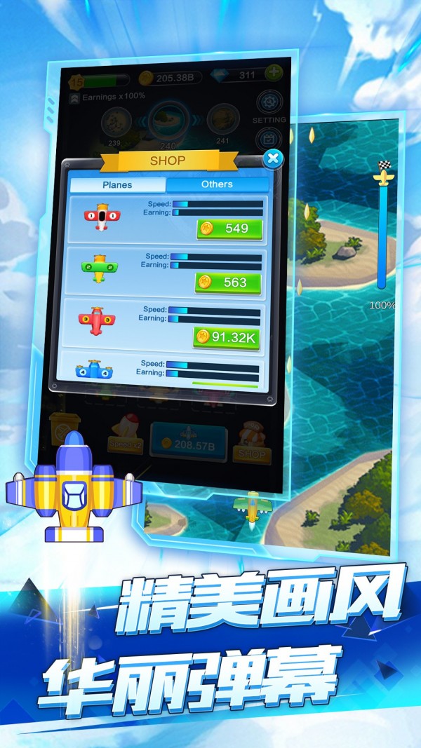 通过简单的滑屏操作即可精准控制战机飞行轨迹,在空中与敌人展开激烈交锋。击败敌人可获得金币奖励,用于升级武器系统和强化战机性能,打造无敌空中霸主。游戏设有丰富的道具系统,敌人会随机掉落各种神奇道具,收集后能获得临时增益效果或特殊技能。多样化的关卡设计包含Boss战、生存模式等挑战,每场战斗都需要玩家运用策略和技巧才能取得胜利。随着游戏进程推进,玩家将解锁更多强力战机和特殊技能,体验越来越精彩的空战冒险。