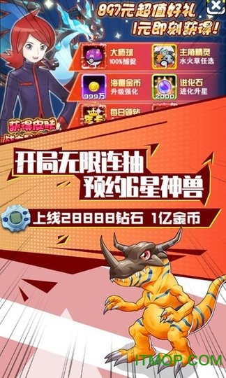 恐龙宝贝向前冲送充值版是一款基于经典日漫IP打造的数码兽养成策略手游,上线即送价值1800元的超值充值红包,还有6星神兽免费领取,海量金币钻石让你爽翻天!游戏完美还原了经典数码世界的精彩剧情,让你重温童年记忆。在这里,你可以收集养成各种强大的数码兽,与它们并肩作战,体验超多副本的自由探索乐趣。