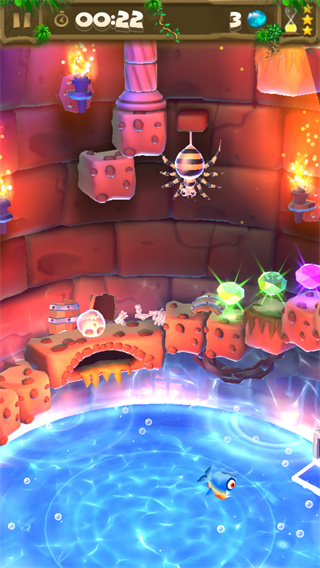 地牢中布满了危险的陷阱和障碍,如深坑、尖刺和落石等。游戏采用智能跳跃系统,当角色接近边缘时,会自动执行跳跃动作,让玩家能够专注于战略决策。在探索过程中,玩家可以收集散落各处的金币、宝石和其他珍贵物品,这些资源可以用来解锁新的装备和道具。