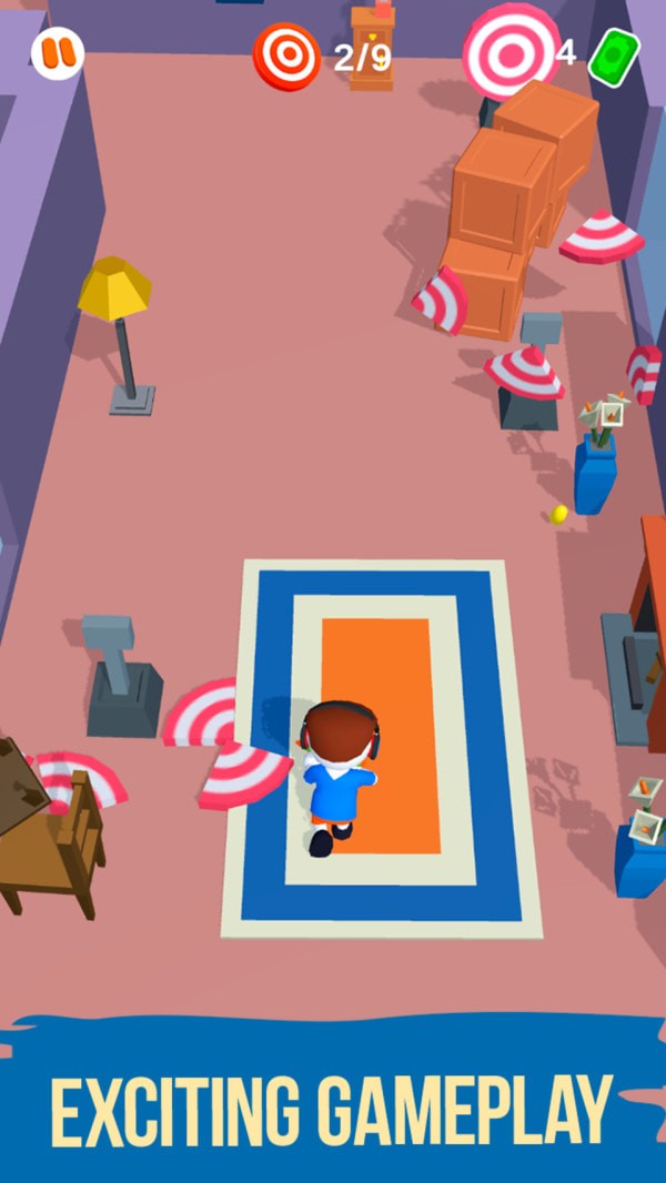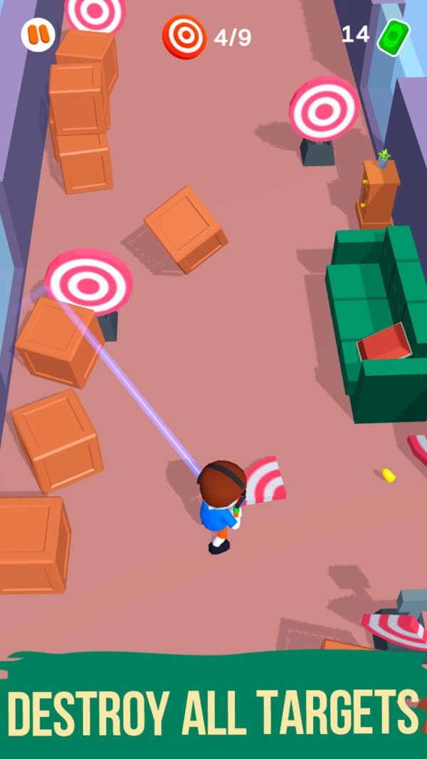 《奔跑的子弹中文版》的任务系统设计合理,玩家需要快速准确地击中所有靶子来完成挑战。游戏中的目标设置颇具创意,有些靶子隐藏在障碍物后面,玩家需要利用墙壁反射等物理特性来击中目标。随着游戏难度提升,需要消灭的靶子数量也会相应增加,这种渐进式的难度曲线让玩家能够逐步提升射击技巧,获得持续的游戏成就感。