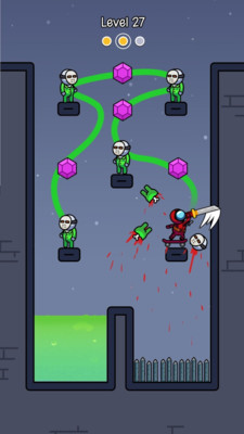 在游戏中,你将扮演一名身手敏捷的滑板杀手,接受各种高难度刺杀任务。通过手指在屏幕上绘制路线,为角色规划最佳行动路径。当路线设定完成后,角色会自动沿着轨迹滑行,玩家可以欣赏到角色做出各种炫酷的滑板特技动作。游戏巧妙结合了物理引擎,让每个动作都显得真实流畅,同时考验玩家的空间想象能力。