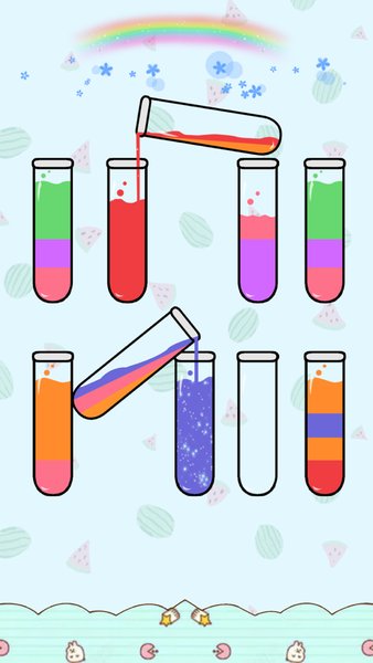 开心拼一拼水排序拥有诸多特色:首先是简单易上手的操作方式,只需手指点击就能完成所有操作,适合各个年龄段的玩家;其次是丰富多样的关卡设计,从简单到复杂循序渐进,保证玩家能持续获得新鲜感;最具特色的是游戏将色彩混合的科学知识融入玩法中,让玩家在娱乐的同时还能学习到有趣的色彩原理。