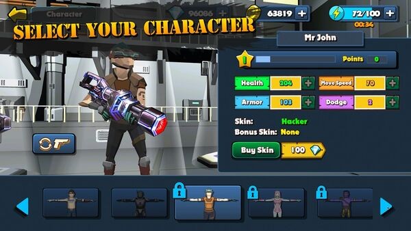 -选择角色皮肤:游戏提供超过50种特色皮肤,每款皮肤都附带专属属性加成,如忍者皮肤提升移动速度,骑士皮肤增强防御力等。