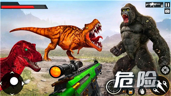 疯狂狙击动物是一款以史前恐龙为背景的沉浸式狩猎射击游戏,玩家将穿越时空来到危机四伏的侏罗纪世界。游戏采用先进的3D引擎技术,完美还原了数十种恐龙的形态特征与震撼吼声,从迅猛龙的低吼到霸王龙的咆哮都栩栩如生。玩家需要运用狙击枪、霰弹枪等多样化武器,在热带雨林、火山地带等动态场景中完成狩猎任务。每次成功击杀都能获得金币奖励,用于升级武器库或解锁特殊装备。随着关卡推进,玩家将遭遇更凶猛的恐龙族群和更复杂的生存挑战,逼真的物理碰撞效果和实时天气系统让每次狩猎都充满变数。