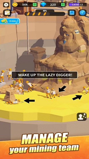 考古挖掘模拟是一款充满趣味性的竖屏卡通风格模拟经营游戏,玩家将扮演一位考古学家,组建并带领自己的专业考古团队,前往世界各地探索神秘的文物古迹。游戏巧妙地将现实中真实存在的文物古迹进行卡通化处理,让玩家在轻松愉快的氛围中体验考古发掘的乐趣。每当成功发掘出珍贵文物时,玩家不仅能获得满满的成就感,还能收获金币与钻石等奖励,这些资源可以用来升级团队装备、招募更多专业人员,让你的考古事业蒸蒸日上!