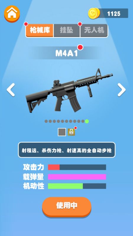 勋章系统,每看10个视频可以获得一个勋章,收集勋章可兑换稀有武器皮肤。