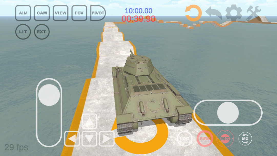 游戏的操作系统经过精心设计,既保证了真实性又兼顾了易用性。左侧虚拟摇杆控制坦克的前进和后退,右侧摇杆则负责转向操作。在屏幕右下角,第一个按钮用于发射主炮,第二个按钮可以让炮塔自动跟随摄像机视角旋转,方便玩家在移动中瞄准目标。