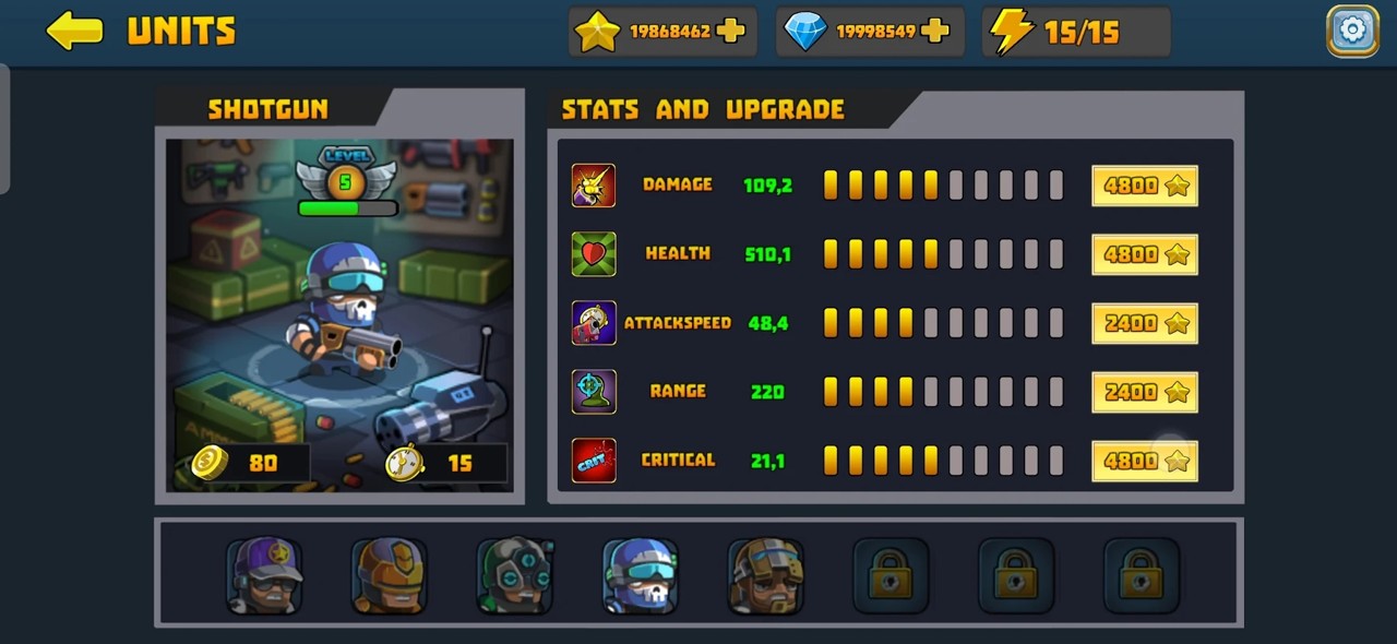 游戏为玩家提供了3个特殊技能,包括放置炸弹、冻结敌人或投掷火箭等强力攻击手段,这些技能可以对敌人造成大量伤害。手枪兵种虽然伤害较低,但射速正常且价格便宜,玩家可以轻松招募大量手枪兵来应对初期战斗。