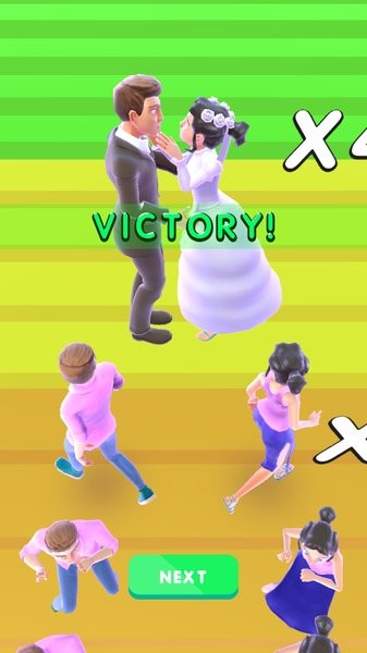 在跑道上成为一个领先的人,关卡中最后的终点就是美好的婚姻殿堂。游戏特别设计了排行榜系统,玩家可以与全球玩家比拼通关速度,争夺最佳情侣称号。