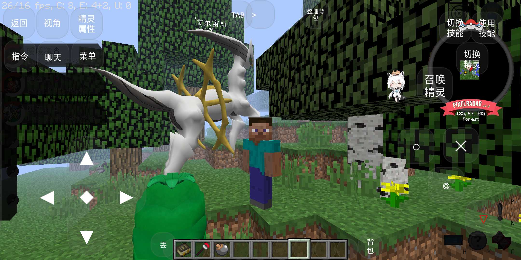 这是一款基于《我的世界》模组开发的宝可梦主题沙盒游戏,完美融合了两大IP的核心魅力。玩家不仅能体验原汁原味的精灵对战系统,还能利用像素方块自由改造地形,打造专属训练场。游戏包含全世代800多种宝可梦,从绿毛虫到超梦应有尽有,每只精灵都拥有精细的3D像素模型和专属动作。特别值得一提的是夜间出现的闪光精灵系统,让收集党能获得独一无二的稀有变种。