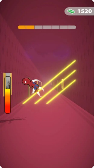 通过滑动屏幕来控制特工闪躲!你需要以惊人的速度穿越高科技保安激光区域,通过精准的滚动和跳跃动作,在激光网中寻找突破口,最终达成任务目标!