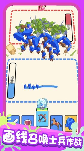 《画画对决》是一款充满创意与欢乐的休闲益智游戏,它将绘画艺术与策略对战完美结合,带来前所未有的趣味体验。游戏中,玩家可以尽情挥洒想象力,通过绘制独特的作战部队和武器来展开激烈对决。无论是线条简单的涂鸦还是精心设计的图案,都能成为你制胜的关键。游戏操作简单易上手,但玩法深度十足,每一场对决都考验着玩家的绘画技巧和战术思维。在这里,你可以展现个性、结交志同道合的朋友,共同探索这个由画笔创造的奇妙世界。