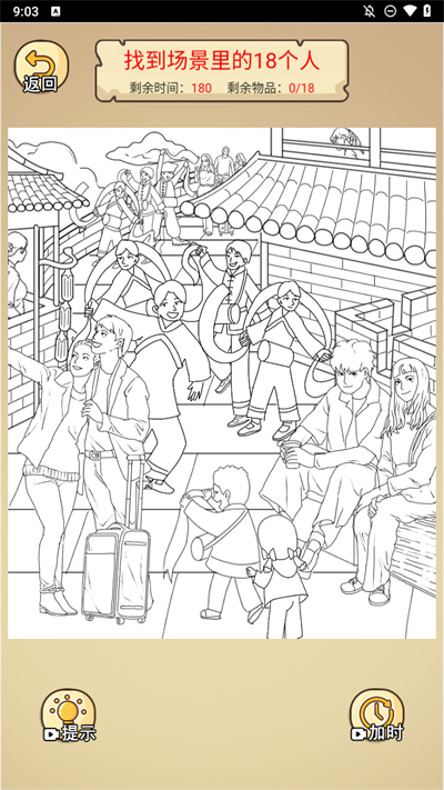 首先打开下载好的游戏,进入游戏后可以看到主界面提供了多种游戏模式选择,包括经典闯关模式、限时挑战模式等。游戏的第一关是一个找茬玩法,玩家需要在规定时间内找出画面中隐藏的18个人物,这个关卡难度适中,只需要点击对应位置即可完成。如果遇到困难,可以点击左下角的提示按钮获取帮助,系统会给出关键线索,让玩家更容易找到正确答案。成功通关后会自动解锁下一关的内容,玩家也可以随时返回主页面选择其他游戏模式或关卡重新挑战。